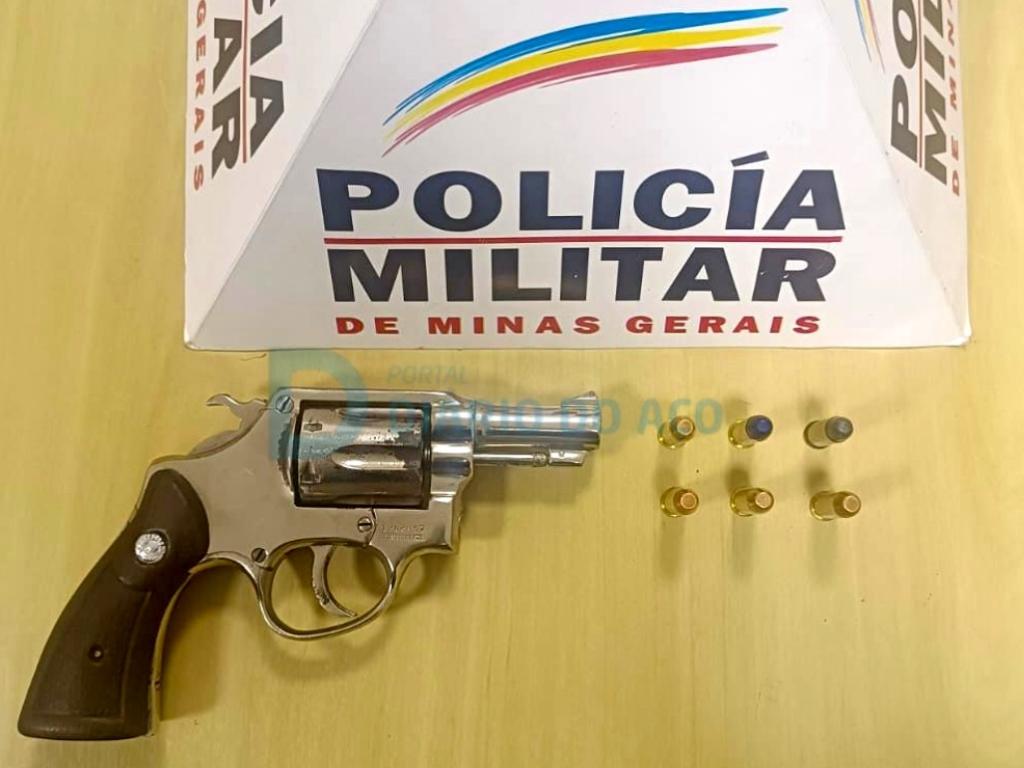 O revólver de calibre 38 foi encontrado sobre o assoalho do Fiat Punto parado pelos PMsUma arma de fogo e munição foram apreendidas durante uma verificação veicular em uma blitz de trânsito realizada na noite de terça-feira (4), na avenida Pedro Linhares Gomes, trecho urbano da BR-381 em Ipatinga. Os policiais militares conduziram dois homens após o encontro de um revólver no Fiat Punto parado na abordagem.