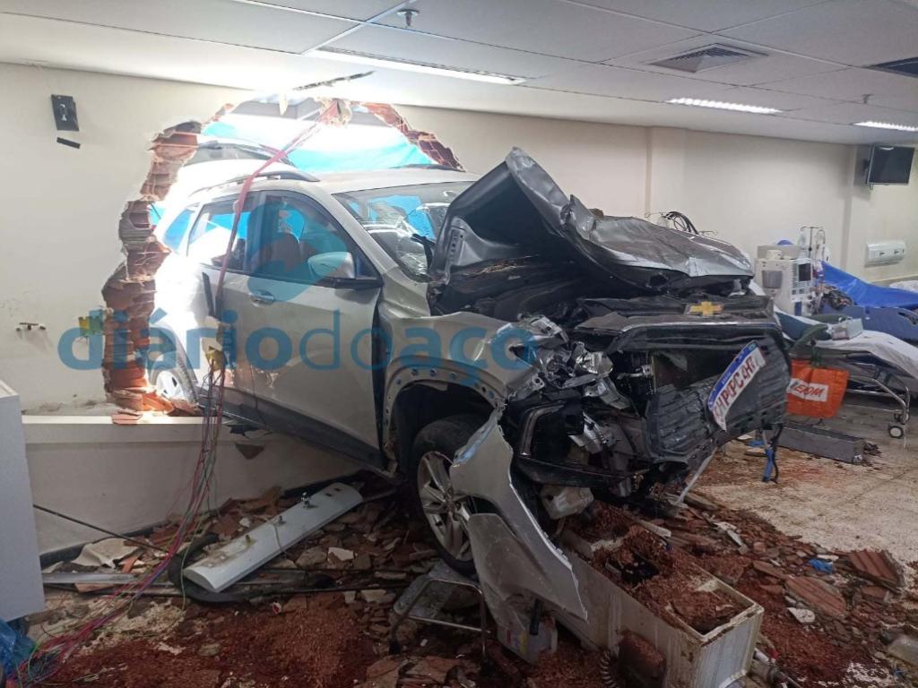 Conforme a versão de testemunhas, o motorista passou pela cancela já debilitado, no etacionamento perdeu o controle, bateu na parede e o Tracker foi parar dentro da sala de hemodiálise