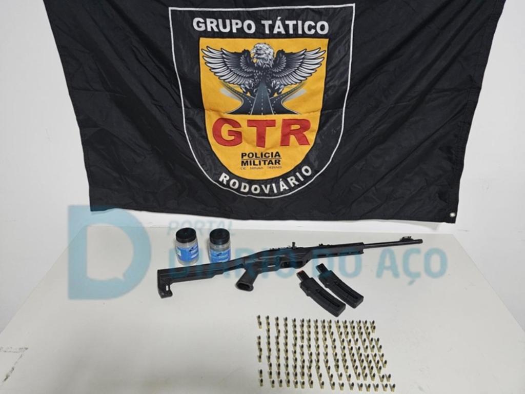 A arma de fogo e a munição apreendidas durante a verificação na picape abordadaA Polícia Militar Rodoviária apreendeu um rifle e mais de 150 cartuchos durante uma operação de fiscalização na noite desse domingo (23) na avenida Cláudio Moura, trecho urbano da BR-458, em Ipatinga. Um homem de 47 anos foi preso em flagrante por porte ilegal de arma de fogo.