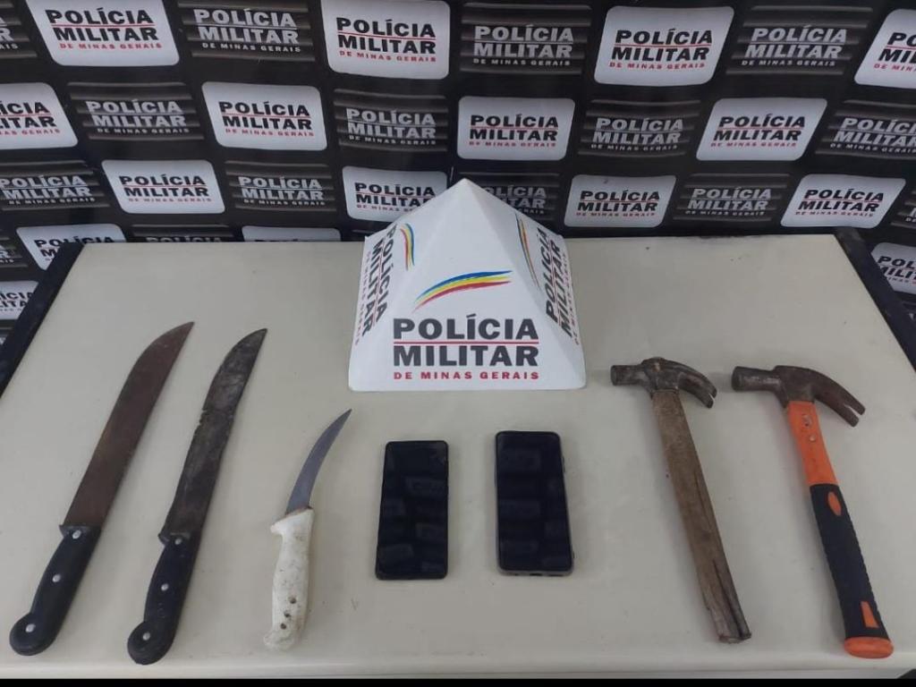 Policiais militares recolheram essas ferramentas, supostamente usadas no crime em Monlevade