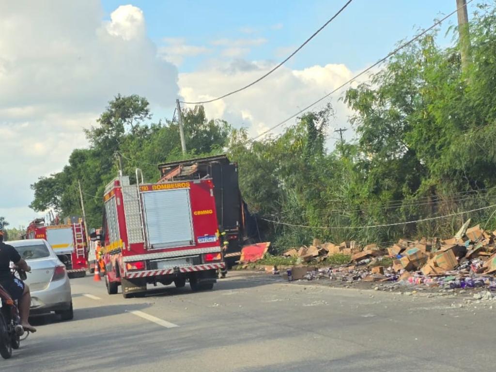 Conforme imagens que circulam nas mídias sociais, o veículo pesado, de forma desgovernada, colidiu contra um poste, à margem direita da pista, provocando o rompimento de cabos de energia elétrica e deixando o trânsito lento na região. A via está liberada apenas na faixa da esquerda.