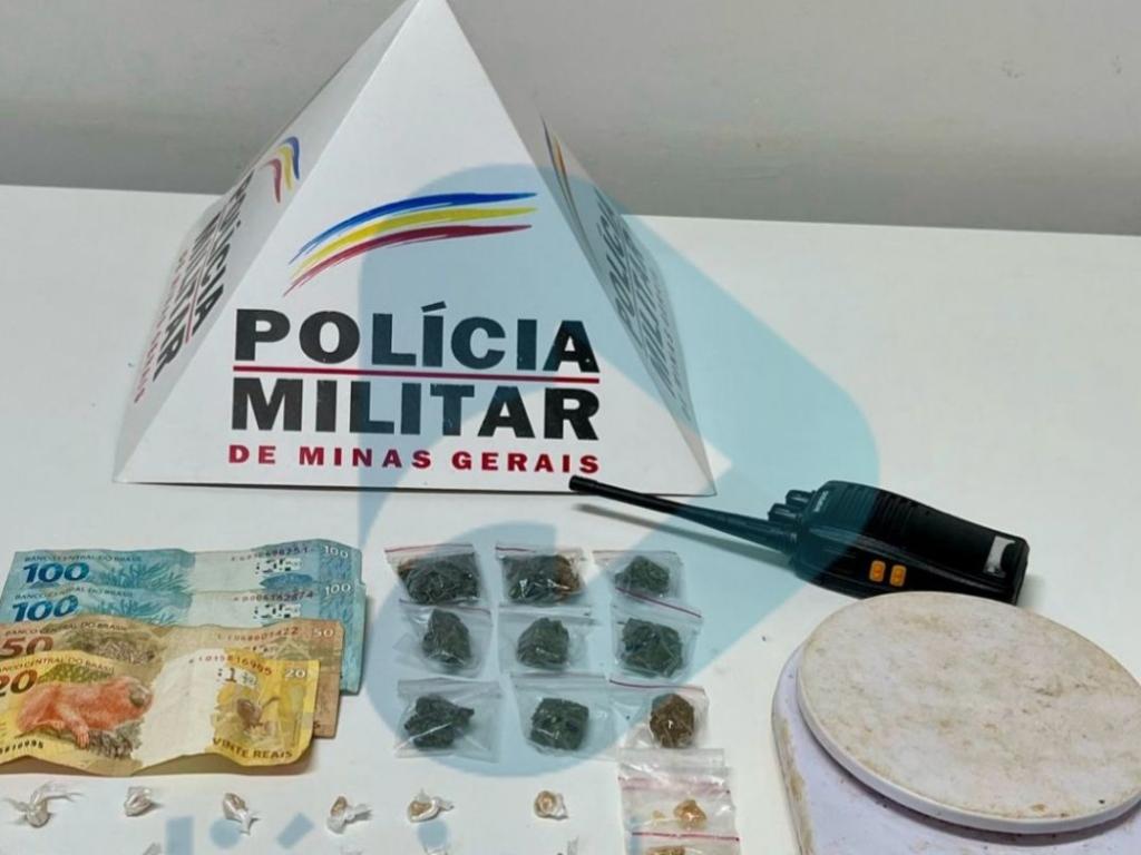 Por meio de diligência foi possível identificar o local de armazenamento dos entorpecentes e demais ilícitos. Os policiais encontraram 32 pedras de crack, nove porções de maconha, uma balança de precisão, um rádio comunicador e R$ 270,00 em espécie.