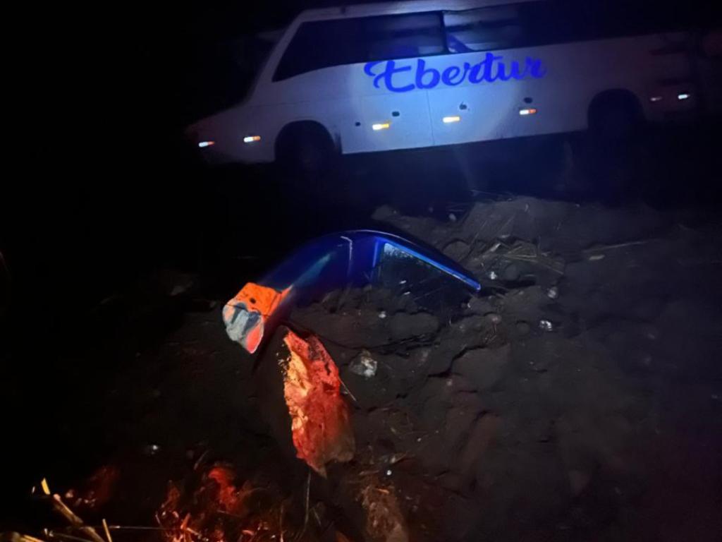 Segundo informações preliminares do Corpo de Bombeiros, o ônibus pertence à empresa de fretamento Ebertur. O motorista relatou que, ao sair de uma curva, perdeu o controle da direção, o que provocou a saída de pista e a queda do ônibus na ribanceira.No momento do acidente, havia 38 passageiros e dois motoristas a bordo. Algumas vítimas conseguiram sair sozinhas do veículo e subir a encosta por onde o coletivo desceu.