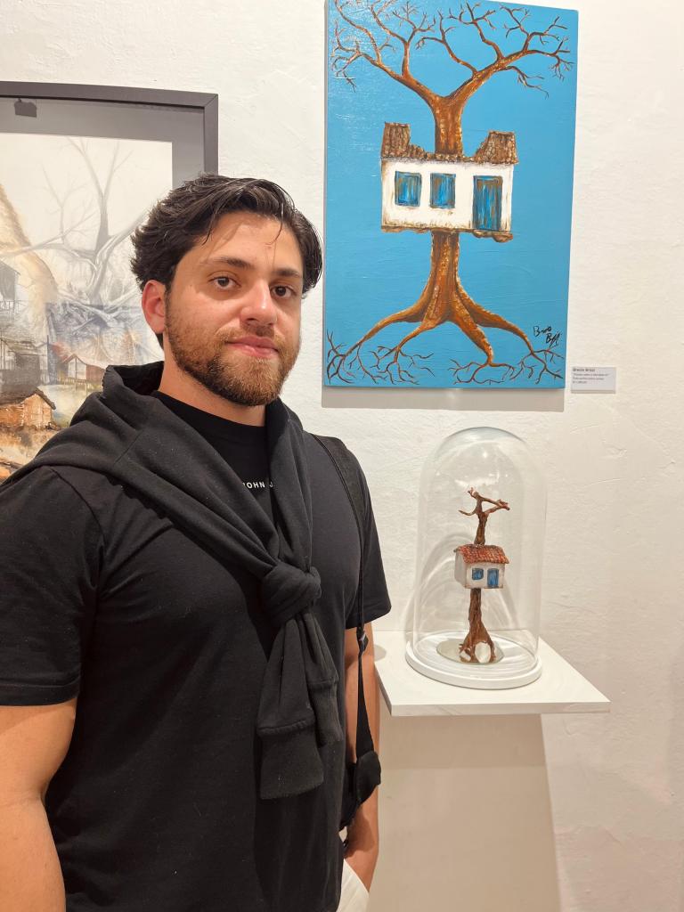 O Ateliê Casarão, no coração do Ipiranga (SP), pulsa até o dia 11 de outubro com a exposição Entre o Instante e o Gesto”, sob curadoria de Paulo duSanctus. A mostra reúne um mosaico de vozes da arte contemporânea, escolhidas entre 159 inscrições vindas de 13 estados brasileiros, dentre os expositores está Brécio Gonçalves Pacheco, mais conhecido como Brécio Brizzi. Nascido e criado no bairro Iguaçu, em Ipatinga, ele é um artista visual, formado em Arquitetura e Urbanismo. Brizzi conta que sempre sonhou em se formar em artes visuais, porém não havia oportunidades na região e, por meio do seu dom, cria uma pesquisa que traz à tona a tensão entre tradição e ruptura, traduzida em elementos de seu cotidiano.