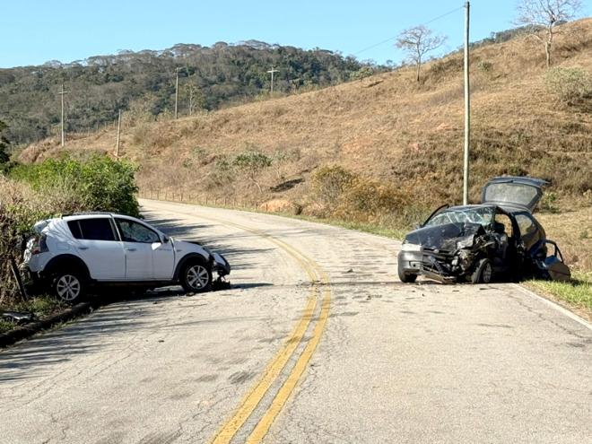 Mulher morre em colisão de carros na MG-820 em São Domingos do Prata