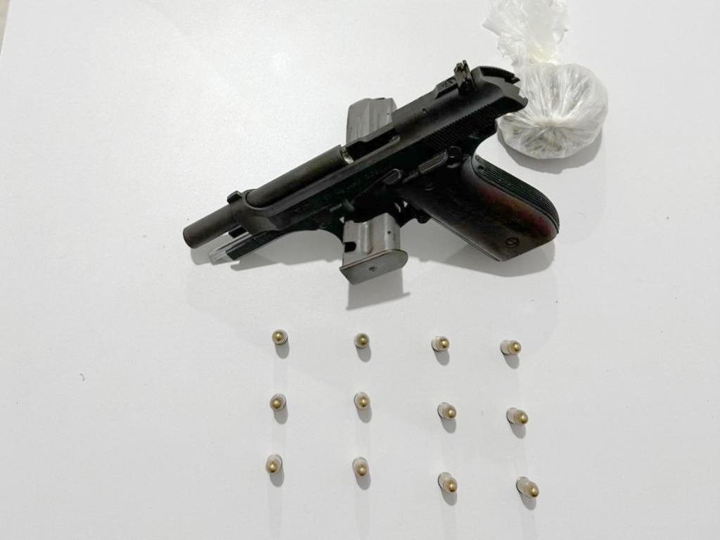 Durante a intervenção policial, o homem manteve comportamento exaltado e chegou a desacatar os policiais militares. Ele informou que tem uma arma de fogo em sua residência e, com a autorização dele e de sua esposa, os policiais apreenderam uma pistola calibre .765, com 12 cartuchos intactos e 62 cartuchos deflagrados.