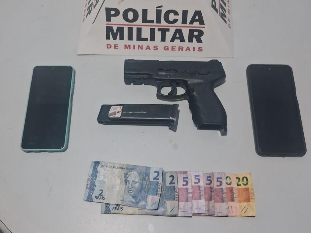 Um deles, de 38 anos, foi abordado e detido. Com ele foram apreendidos um simulacro de arma de fogo, dois telefones celulares e R$ 54. O outro homem conseguiu escapar.
