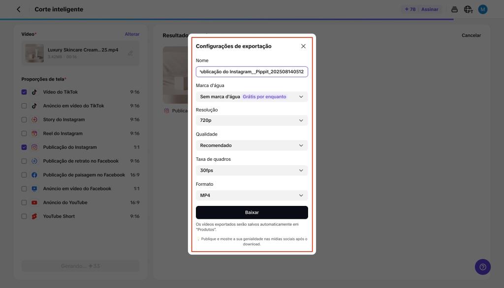 É como ter um assistente pessoal nos bastidores, garantindo que seu vídeo pareça feito sob medida para cada plataforma sem esforço extra.