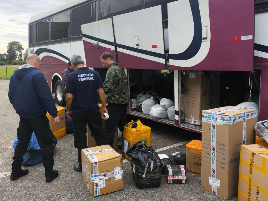 Um ônibus com material de contrabando vindo do exterior foi apreendido em Ipatinga. A ocorrência foi registrada por volta de 6h desta quarta-feira (22), no km 249, trecho urbano da BR-381, no bairro Ferroviários. Foram detidos dois homens de 61 anos e outro de 55 anos.