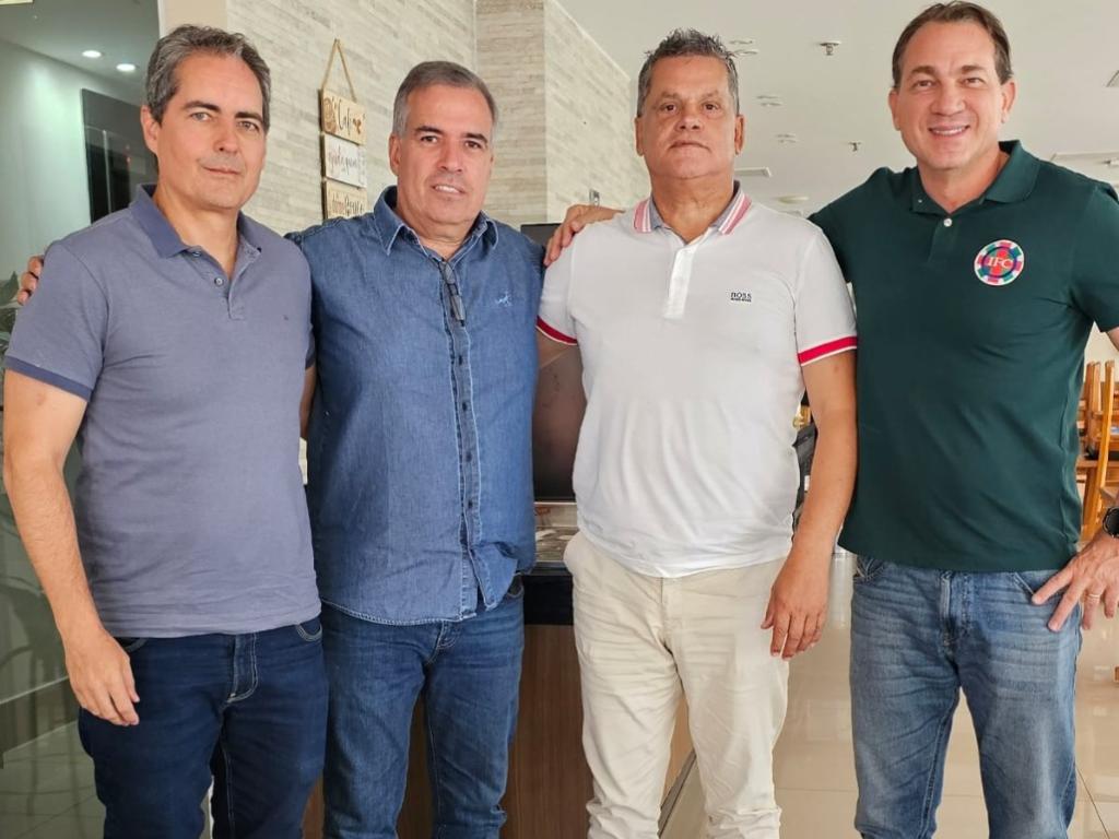 Edison Travassos (segundo da esquerda para a direita) e Igor Maciel (com a camisa do Tigre) com o dirigente português e seu assessor: acordo é possível para eliminar o transfer ban