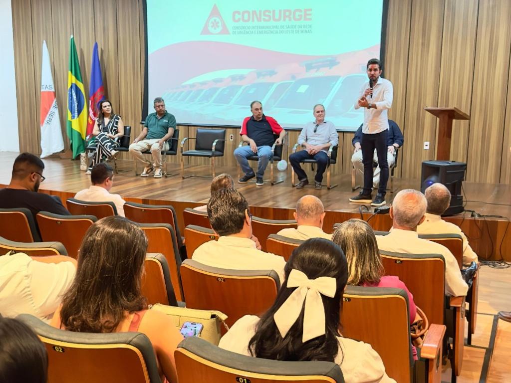 Assembleia nesta quinta foi marcada por assuntos que impactam diretamente o serviço de saúde ofertado para a população das cidades que integram o consórcioO Consórcio Intermunicipal de Saúde da Rede de Urgência e Emergência do Leste de Minas (Consurge), presidido pelo prefeito de Ipatinga, Gustavo Nunes, realizou na manhã de quinta-feira (30), no auditório Sérgio Leite de Andrade do Hospital Municipal Eliane Martins, a Assembleia Geral Extraordinária. O encontro contou com a participação de prefeitos, secretários municipais de Saúde e agentes públicos de saúde dos 82 municípios que integram o Consórcio.