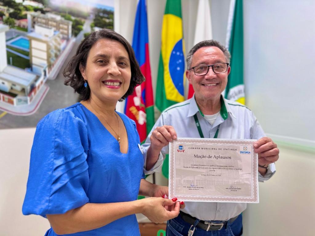 O presidente da AAPI, Joaquim Cândido Ferreira, acompanhado por membros da diretoria, recebeu nesta sexta-feira (31) a Moção de Aplausos nº 1187/2025, de autoria da vereadora professora Cida Lima, aprovada por unanimidade pela Câmara Municipal de Ipatinga. As informações foram divulgadas pela assessoria da AAPI.