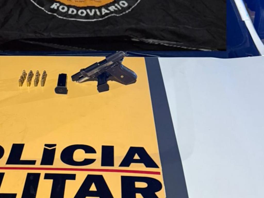 O indivíduo conduzia um Ford Fiesta quando foi abordado pelas equipes da Polícia Militar Rodoviária. Durante a fiscalização, os policiais encontraram dentro de uma pochete uma pistola Imbel calibre .380, com numeração suprimida.