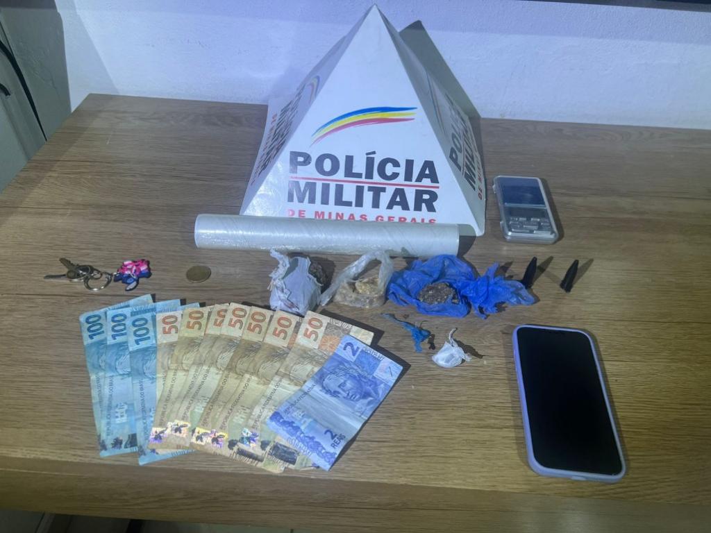 Diante das denúncias, os militares foram até a residência do suspeito e também fizeram o procedimento de busca no local, localizando dois pinos de cocaína, três porções de maconha, uma porção e uma pedra de crack, uma balança de precisão, um celular iPhone, um rolo de plástico filme e molho de chaves.