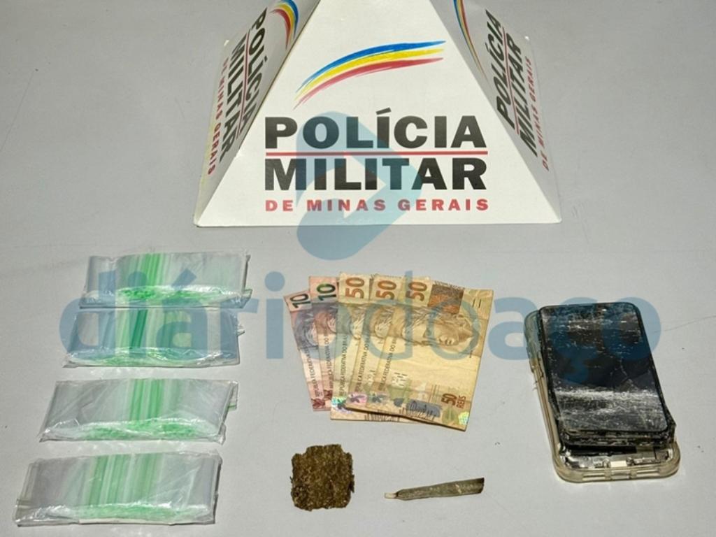 No imóvel, os militares encontraram uma porção e um cigarro de maconha, R$ 170 em dinheiro, materiais para embalar drogas e um aparelho de telefone celular que havia sido destruído.