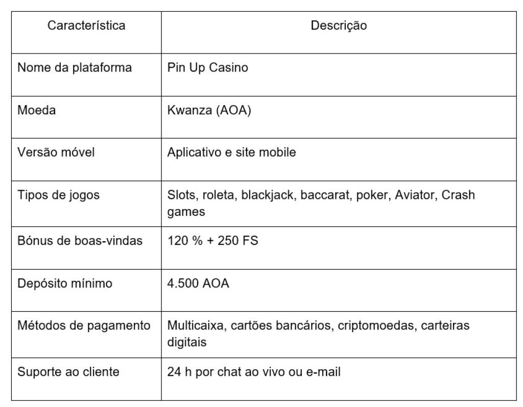 O Pin Up Casino é confiável em Angola?Sim. O Pin Up Casino Angola opera de forma legal e segura, cumprindo padrões internacionais de proteção de dados e jogo justo.
