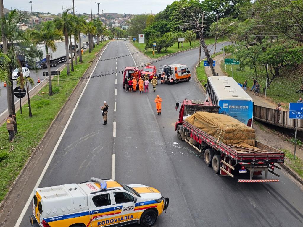 Com o impacto, o ônibus foi projetado contra um poste da rede elétrica. O equipamento ficou parcialmente tombado e parte dos cabos de telecomunicações ficaram caídos na rodovia, o que interditou também a pista do sentido Governador Valadares a Belo Horizonte, ou seja, no sentido ao bairro Horto.
