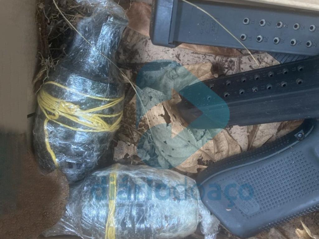 Durante as diligências, a equipe localizou uma caixa de papelão escondida entre uma moita de espinhos. Dentro dela estavam uma arma de fogo, dois carregadores e duas granadas. A Central de Operações entrou em contato com o Batalhão de Operações Especiais (BOPE) e, após analisar as imagens enviadas, autorizou que os materiais fossem apreendidos seguindo protocolo de segurança.