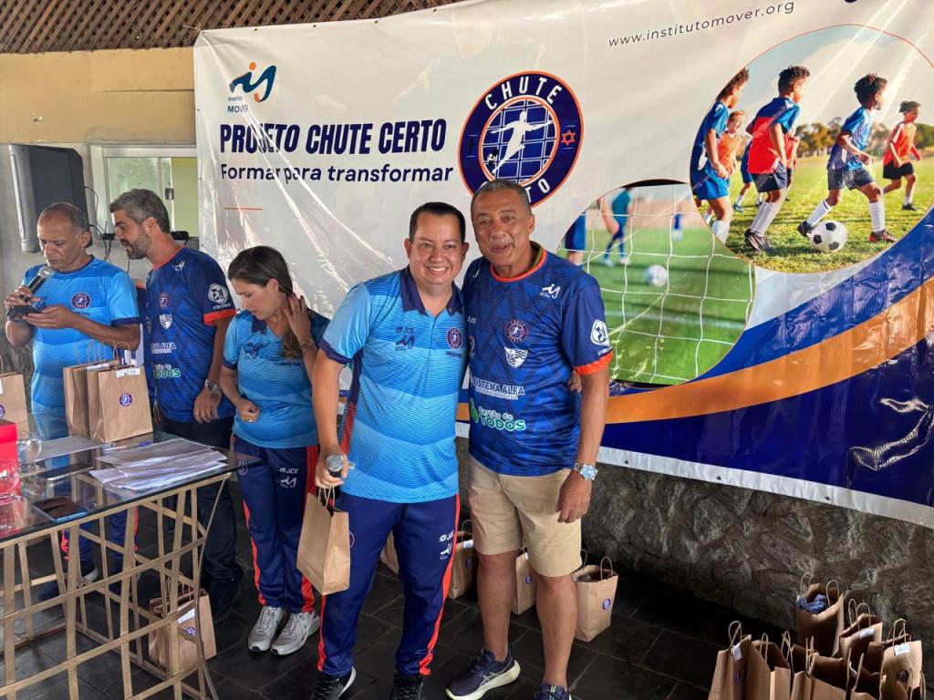 Higor Carlech, ao lado da esposa Amanda Carlech e também atuante no Chute Certo, aproveitou a solenidade do último sábado para, antes da apresentação das instalações do Departamento Médico, presentear dezenas de apoiadores com uma camisa personalizada e contar a história de evolução do projeto.