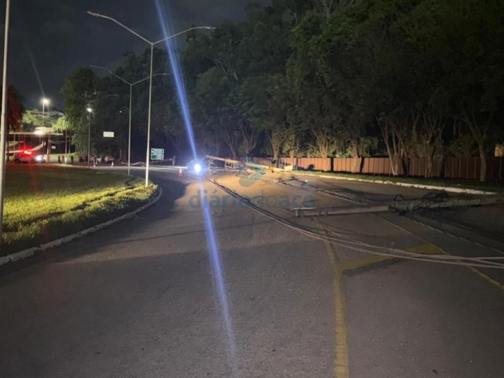 De acordo com a Polícia Militar, as equipes foram acionadas pelo Central de Operações (Copom) diante de um acidente de trânsito envolvendo um Ford Focus que havia colidido contra um poste. Com o impacto, o equipamento caiu e arrastou toda a fiação elétrica, derrubando outros dois postes, um à direita e outro à esquerda da via.