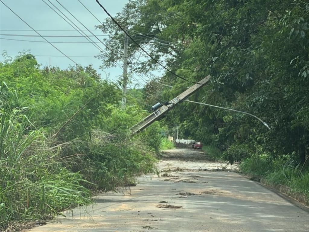 Moradores filmaram um poste caído no meio da rua na madrugada deste domingo