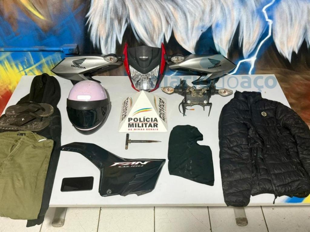 Materiais apreendidos são todos produtos de roubos praticados pelos criminosos presosA Polícia Militar prendeu dois marginais que praticaram um roubo à mão armada na manhã de sábado (20), em um estabelecimento comercial localizado na avenida das Flores, no bairro Bom Jardim, em Ipatinga, fato esse noticiado pelo Diário do Aço. Os envolvidos têm 18 e 22 anos. Na ação, também foram apreendidas motocicletas usadas no crime, sendo uma delas com registro de furto, além de outros materiais relacionados à ocorrência.