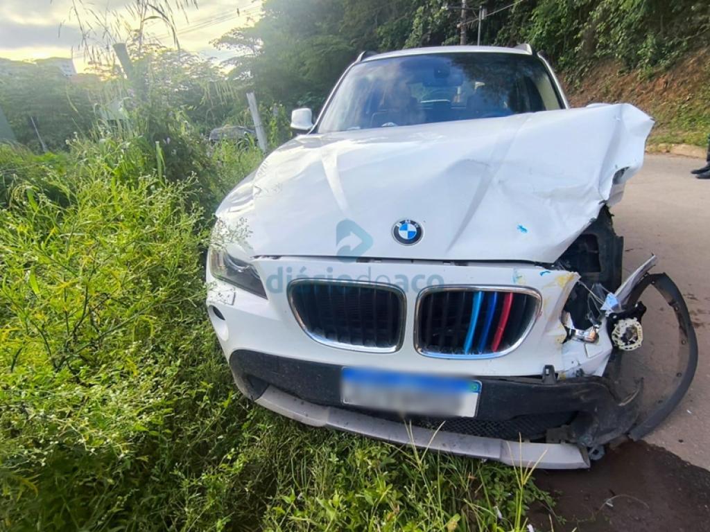 Viatura da PM e BMW colidem durante perseguição a veículo clonado no Vale do Aço