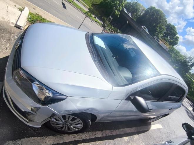 Com a batida no Gol, o Onix ficou mais danificado e sua condutora sofreu uma luxação no pé