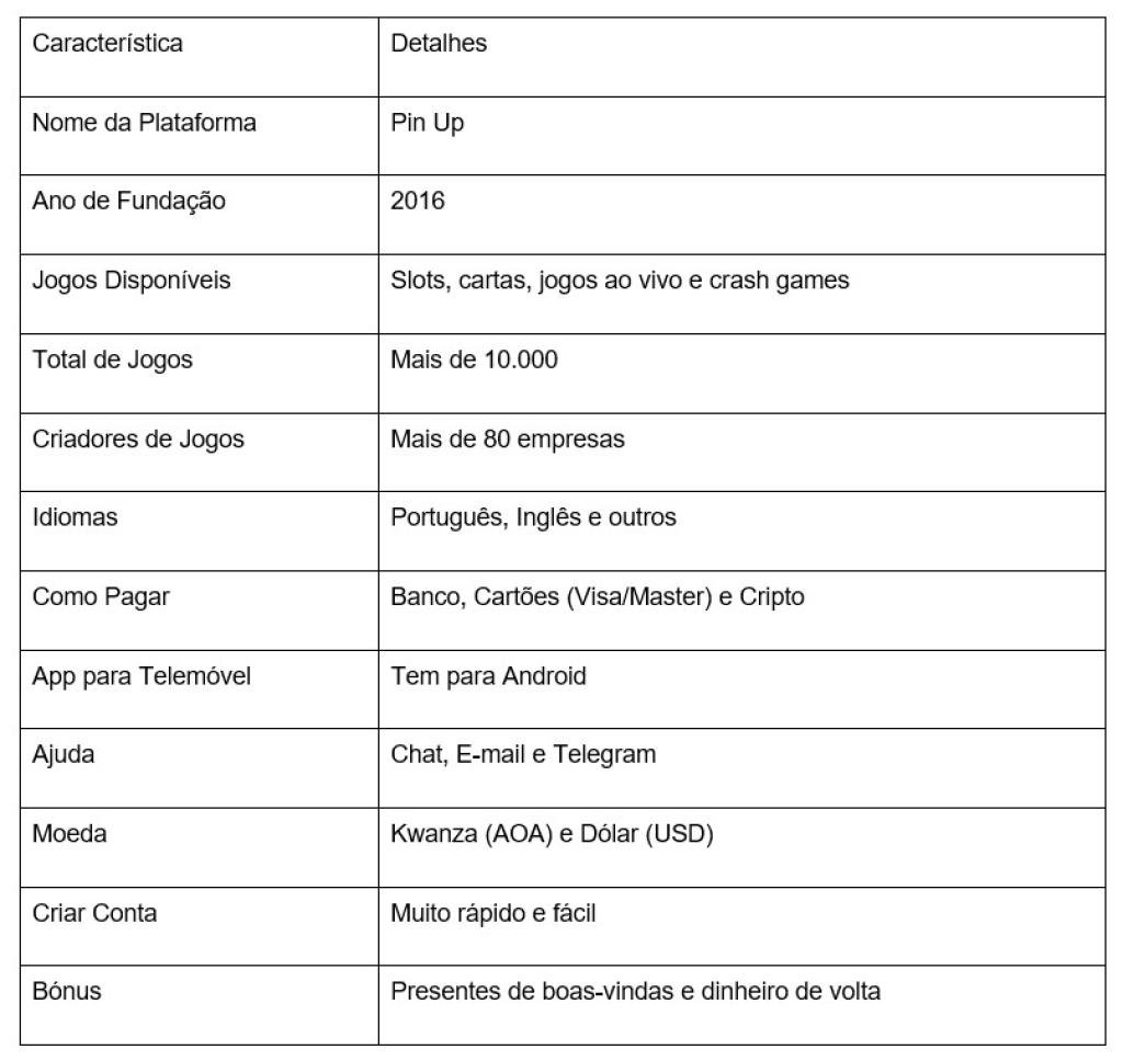 O Pin Up Casino funciona desde 2016 e é um lugar seguro para jogar na internet em Angola. No site, tu encontras mais de 10.000 jogos de 80 empresas diferentes. Tem muita variedade, como jogos de sorte e de cartas.