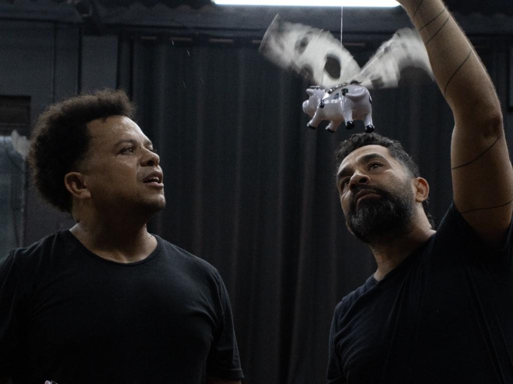A cena é dividida por Wenderson Godoi - para quem o passado está à frente, o futuro está na gente” - e Luciano Botelho, que estão juntos há mais de 20 anos na trajetória do grupo Hibridus, nascido na periferia, na cultura negra e nos projetos sociais de base comunitária, onde a criação coreográfica não é apenas gesto artístico, mas uma estratégia de vida, convivência e resistência”, conforme ressaltam os artistas. Uma das marcas destacadas por eles no novo espetáculo é o narrador fora do tempo”: a voz do crítico Marcello Castilho Avellar (1960-2011) recriada por inteligência artificial, a partir de registros históricos e com autorização expressa da família. Essa voz não simplesmente relata, mas cria um diálogo com a cena, ativando uma camada crítica e afetiva que amplia a experiência do público e reforça a dimensão política do trabalho”, afirma a produção.