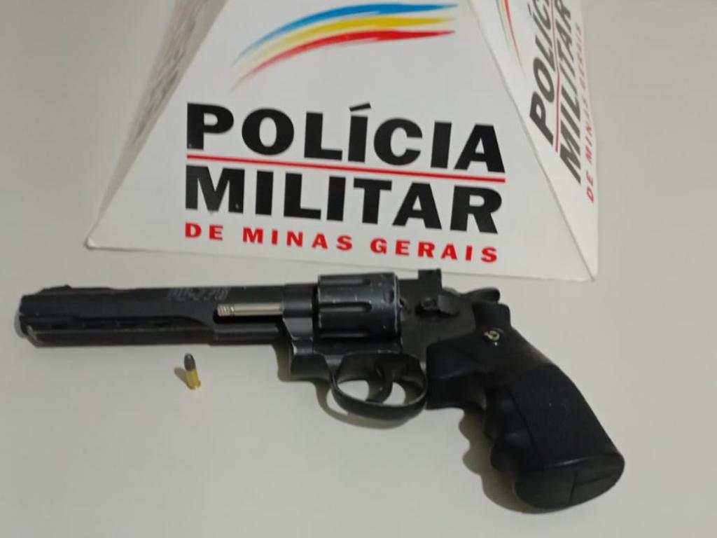 A arma de fogo, que estava municiada com um cartucho de calibre 22, estava na cintura de um dos abordados pela PM