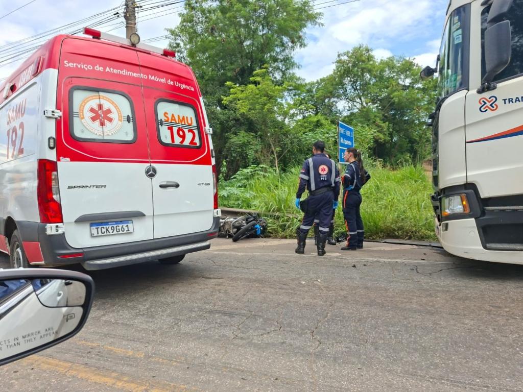 Acidente envolveu uma motocicleta e um caminhão, no trecho da BR-458 na entrada de Ipatinga