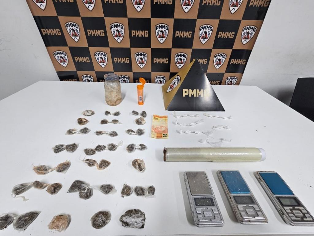 Com apoio de outras guarnições, os policiais retornaram ao ponto onde o menor havia sido visto manuseando os objetos. No local, foram localizados um frasco contendo 18 papelotes de cocaína, uma sacola com 38 buchas de maconha, além de três balanças de precisão e materiais usados para embalar drogas, como sacolinhas plásticas e rolo de plástico filme.