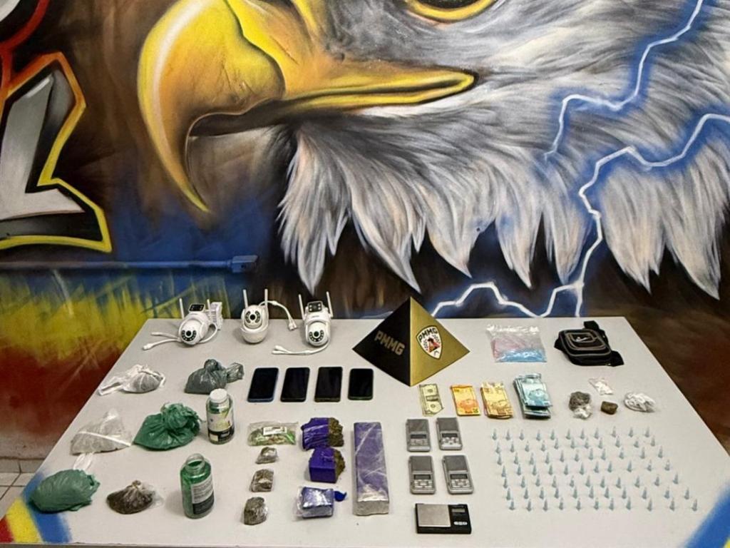 Depois de montada e deflagrada a operação, as equipes conseguiram abordar o imóvel, prender os envolvidos e arrecadar os materiais ilícitos, que constituem em duas barras, 10 porções e quatro buchas de maconha; 84 pinos e uma porção de cocaína, 16 pedras e duas porções de crack; cinco balanças de precisão, R$ 1.618,00; $ 2,00 (Dólar); quatro celulares, três câmeras de monitoramento e vários eppdorfs e plásticos ziplock.