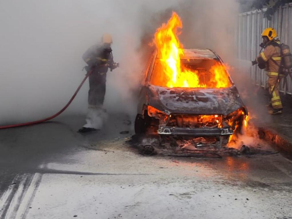 No local, os militares encontraram o automóvel tomado pelas chamas, já na fase totalmente desenvolvida do incêndio. Conforme nota divulgada pelo Corpo de Bombeiros, o proprietário relatou que o fogo teria começado no compartimento do motor, imediatamente após o acionamento da chave de ignição. Segundo a corporação, não houve registro de vítimas.Risco de propagação térmica