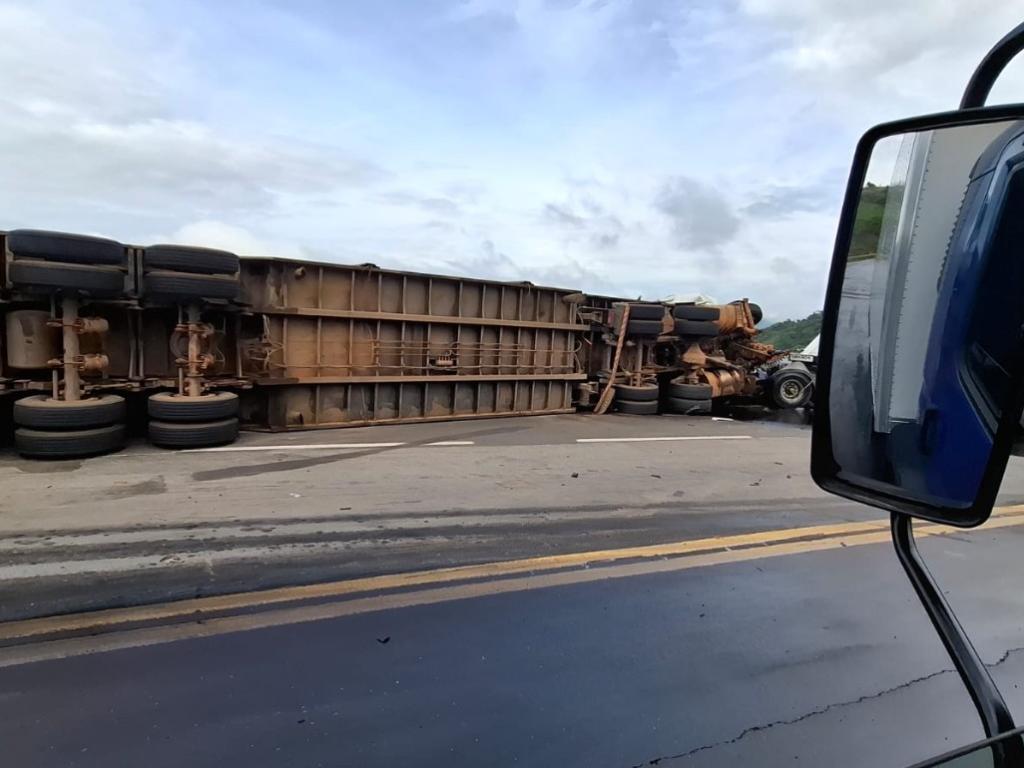 Batida entre três carretas mobiliza resgate aéreo e bloqueia BR-381 em Monlevade