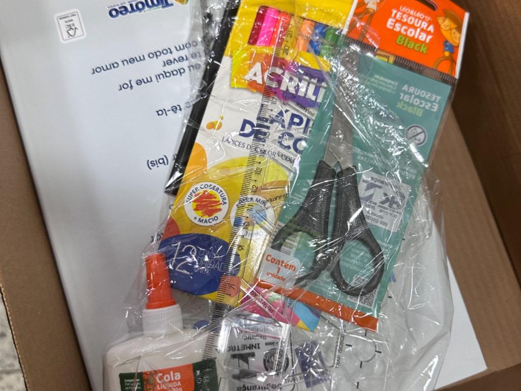 Para os menores, os materiais incluem itens como lápis jumbo e apontadores maiores, pensados para facilitar o manuseio. Já os professores recebem um kit com foco no apoio pedagógico em sala de aula, contendo agenda personalizada, caderno universitário capa dura, pincéis e apagadores para quadro branco, entre outros itens.