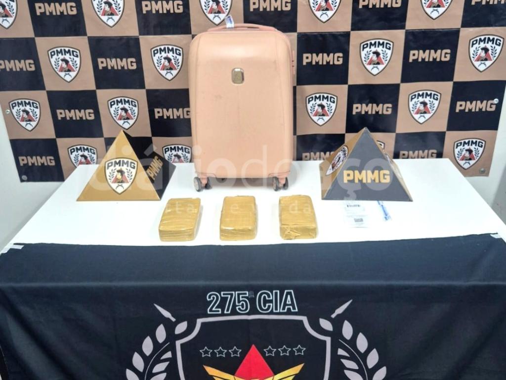 A equipe localizou então uma mala rosa no bagageiro do coletivo, identificada com o mesmo número do ticket encontrado com a suspeita. No interior da bagagem, foram localizadas mais duas barras embaladas de forma semelhante, totalizando três barras de crack apreendidas.