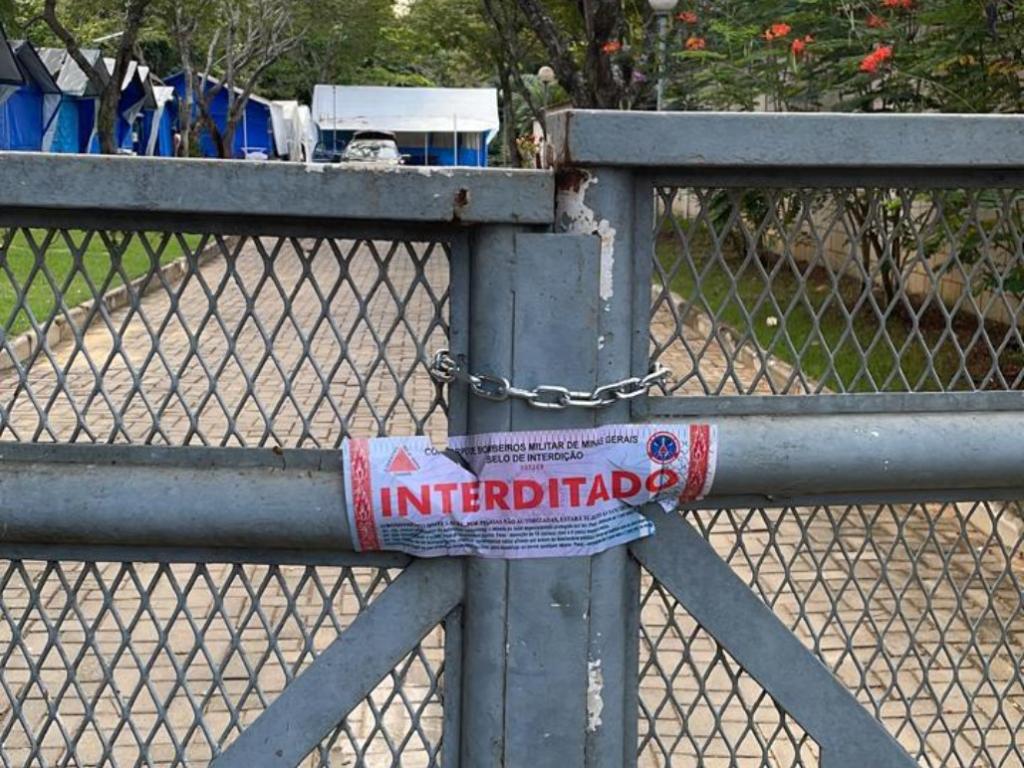 Portão da área de camping interditado pelo Corpo de Bombeiros no fim da tarde desta sexta-feira