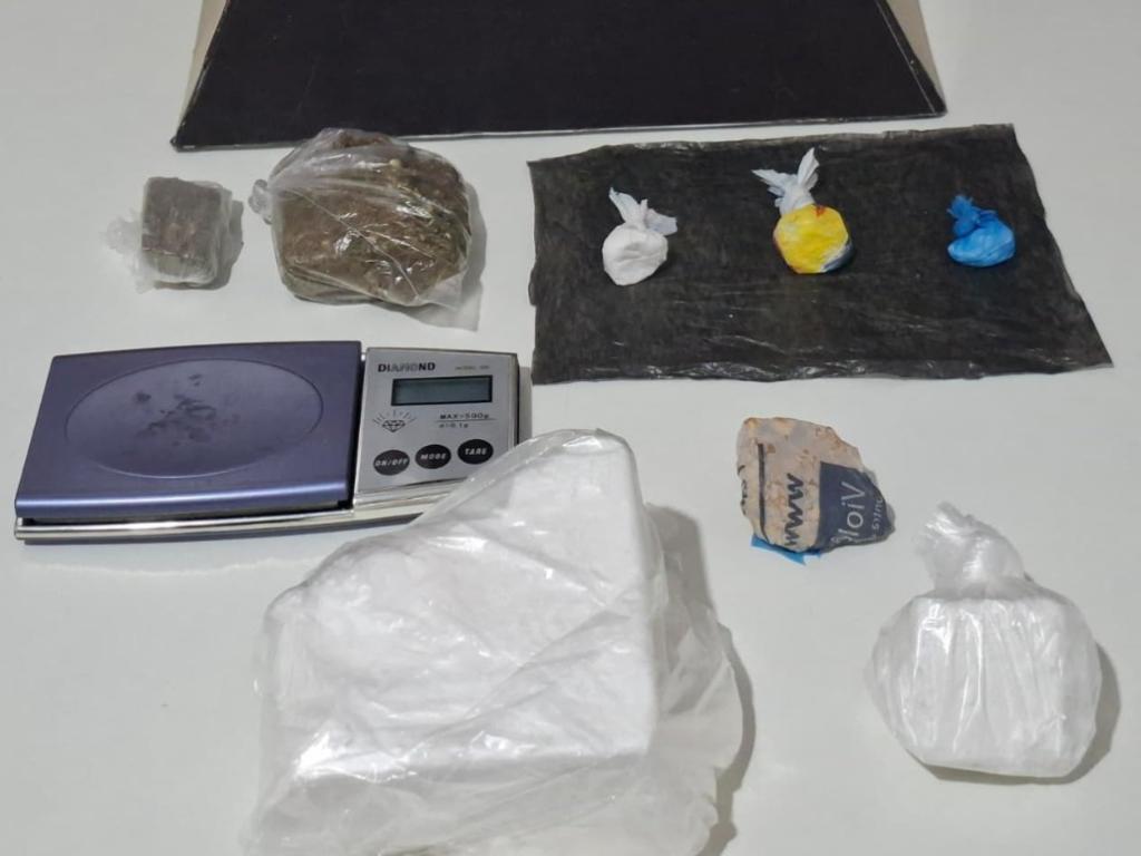 Durante buscas no quarto do investigado, foram encontrados papelotes com cocaína, tabletes de maconha e crack, além de uma barra de cocaína. Também foram apreendidos mais porções da droga e uma balança eletrônica.