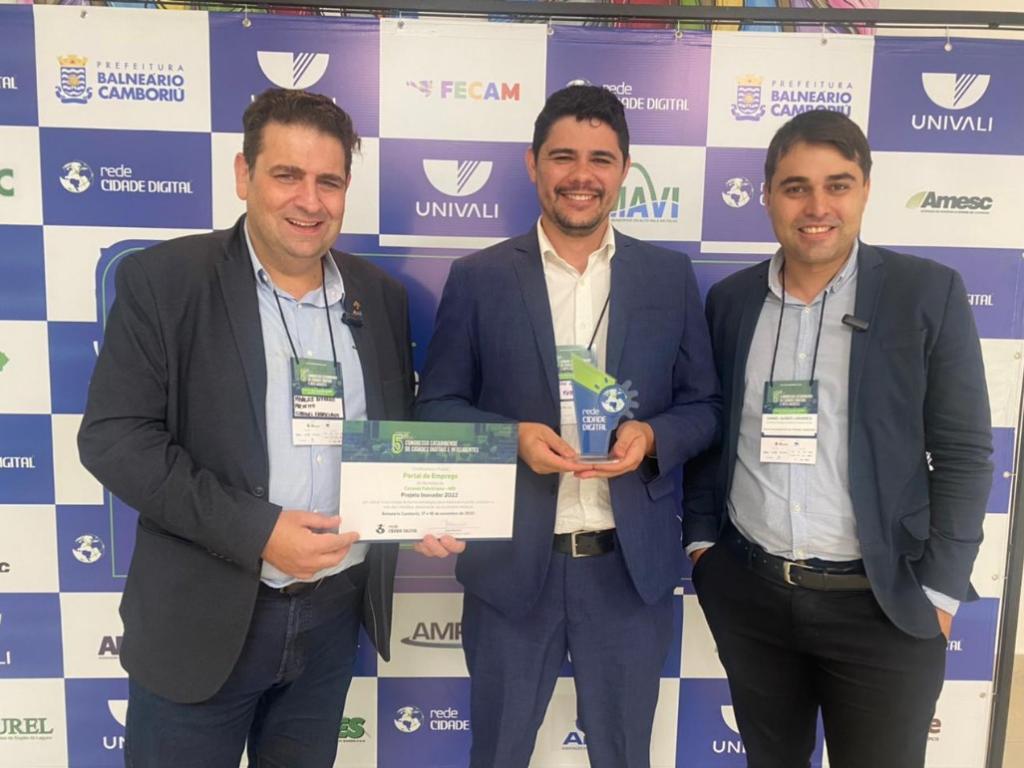 O anúncio ocorreu no 5º Congresso Catarinense de Cidades Digitais e Inteligentes, em Balneário Camboriú (SC), nessa quinta-feira (17). O prêmio foi recebido pelo prefeito Marcos Vinicius juntamente com o secretário Daniel Papa e parte da equipe da Secretaria de Governança de Estratégica da Qualidade, Inovação Tecnológica e Sustentabilidade Econômica, idealizadora e gestora do projeto.