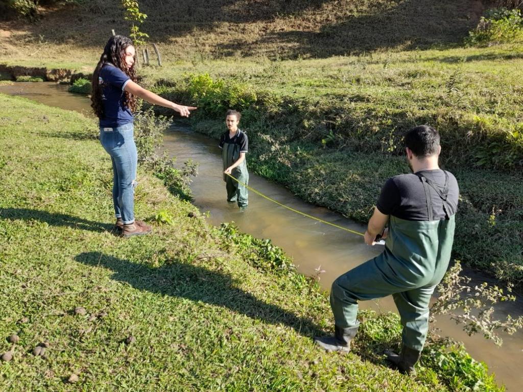 Para esse trabalho foi utilizada o Método do Flutuador. Com o uso de uma trena, é medida a largura do canal, em seguida, é determinada sua profundidade média. Para cada uma dessas variáveis são realizadas três medições dentro da seção. Fazem-se medições para estimar a média das profundidades, somam-se todos os pontos amostrados e divide-se pelo número de pontos amostrados”, detalha o coordenador.