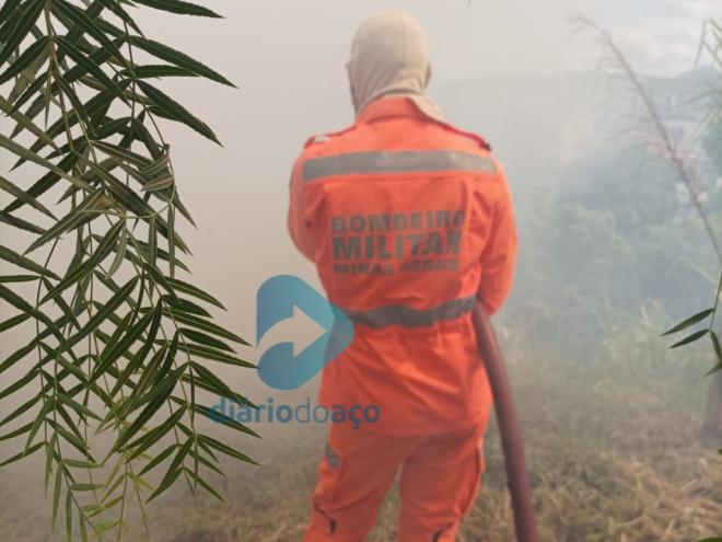 No começo da tarde deste domingo (16), militares do Corpo de Bombeiros foram acionados para combater um incêndio em vegetação na avenida Gerasa, no bairro Canaã, em Ipatinga