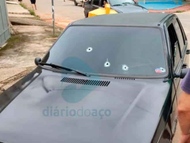 O carro em que se encontrava o alvo do crime ficou crivado de balas