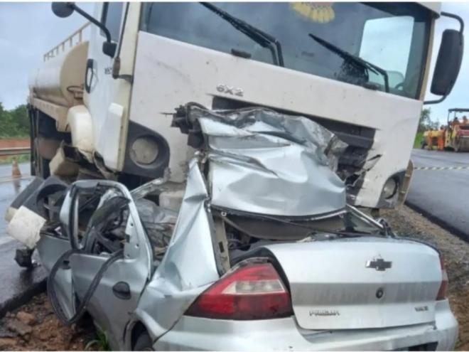 Uma colisão frontal entre um Chevrolet Prisma um caminhão-tanque VW deixou quatro pessoas mortas, no km 595 da MGC-135, trecho no município de Corinto