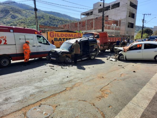 Um acidente entre um veículo Nissan Versa, um Fiat Doblò e um caminhão deixou sete feridas