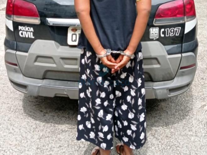 Policiais civis cumpriram o mandado de prisão contra a acusada de atear fogo e desferir golpes de tesoura contra o ex-companheiro