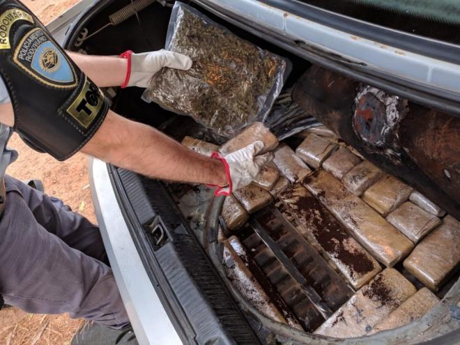 Uma equipe da Polícia Militar Rodoviária (PRv) apreendeu droga e munição em uma picape abordada no Km 53 da rodovia LMG-758, trecho do município de Açucena