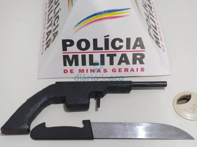 Três indivíduos armados com faca e um simulacro de arma de fogo foram presos na madrugada desta segunda-feira (5) reconhecidos como autores de um assaltado a um motorista de aplicativo