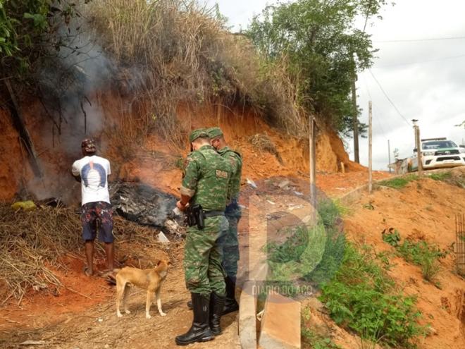Em trabalho de patrulhamento, uma equipe de Polícia Militar de Meio Ambiente visualizou sinais de fogo que atingia uma área verde, no alto do bairro Mangueiras, em Coronel Fabriciano, na tarde desta terça-feira (30)